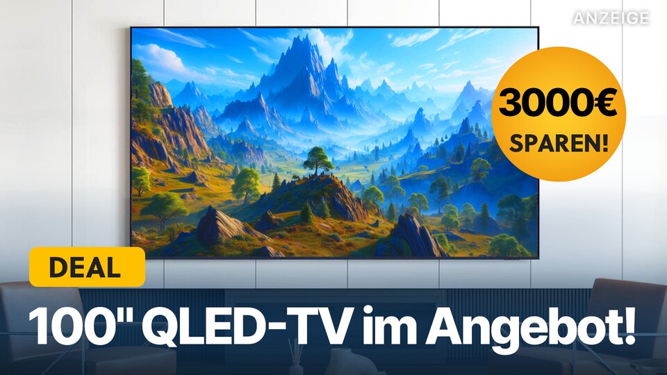 Keine Lust mehr auf Kompromisse bei der Größe eures Fernsehers? Dann könnt ihr euch jetzt einen gigantischen QLED 4K-Fernseher im Top-Angebot schnappen: Bei Otto bekommt ihr den 100 Zoll großen Samsung QN80F mit Mini-LED-Display und 144Hz stolze 3000€ günstiger. Laut Vergleichsplattformen wie Geizhals gab es Samsungs einzigen aktuellen 4K-TV dieser Größe noch nie zu einem besseren Preis. Hier findet ihr den Deal: