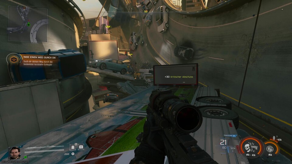 Knapp die Hälfte der 11 Einsätze sind recht klassische, mal mehr, mal weniger offene CoD-Levelschläuche, in denen es dank der oben erwähnten Toxin-Wirkungen einige wirklich coole übernatürliche Twists und Überraschungen gibt. Da fallen unter anderem mal gigantische Macheten vom Himmel, Autobahnen in Los Angeles drehen sich spiralförmig oder Masons Trupp wird von Zombies und Riesenspinnen angegriffen.