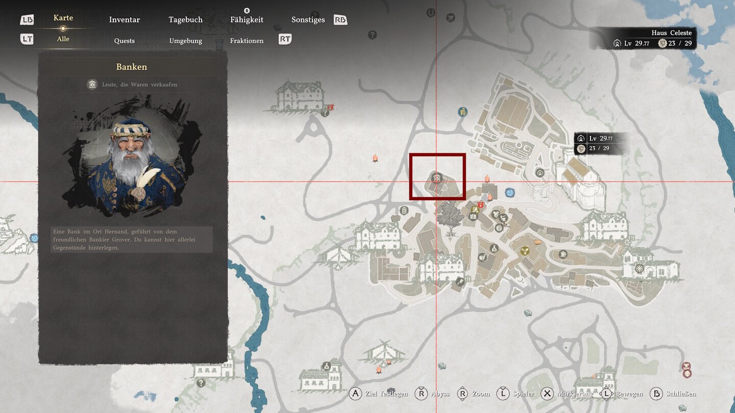 Ist das geschafft, dann ist der Rest ganz simpel: Besucht jetzt einfach die Bank von Hernand, links und leicht oberhalb vom Schnellreisepunkt. Hier wird euer Barren ganz ohne weitere Gebühren oder Aufgaben gegen 500 Silber eingetauscht. Jetzt seid ihr reich. Viel Spaß beim Shoppen!