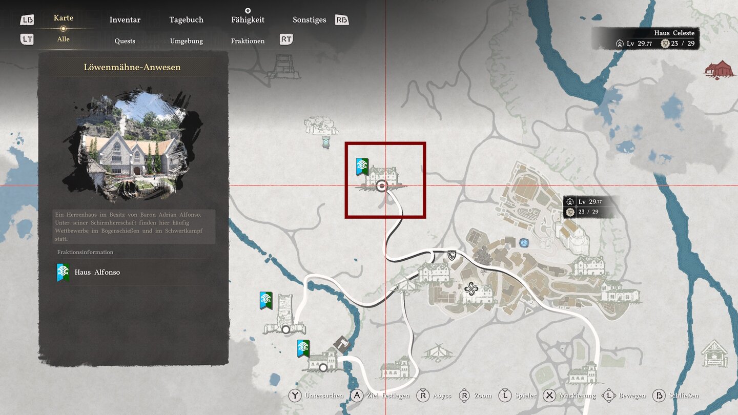 Nordöstlich von Hernand befindet sich das Löwenmähne-Anwesen der Alfonsos. Die Vordertüre wird von Wachleuten versperrt, den Personen hinter der Villa ist es aber völlig egal, wenn ihr durch ein Fenster reinklettert.
