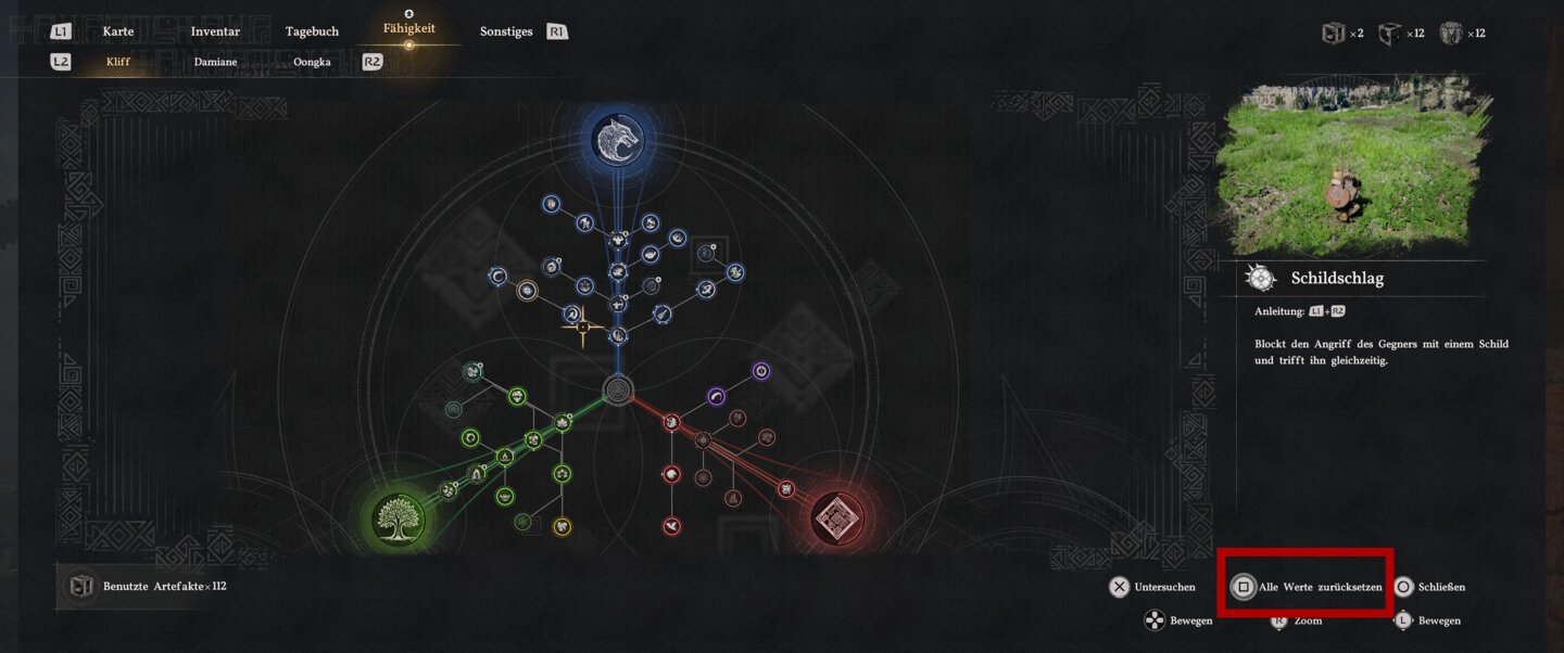 Mit ihnen könnt ihr eure Skillbäume zurücksetzen. Geht dafür in den Skillbaum, den ihr resetten wollt, und haltet die Viereck- bzw. X-Taste gedrückt. Dann landen alle bisher eingesetzten Artefakte wieder in eurem Inventar.