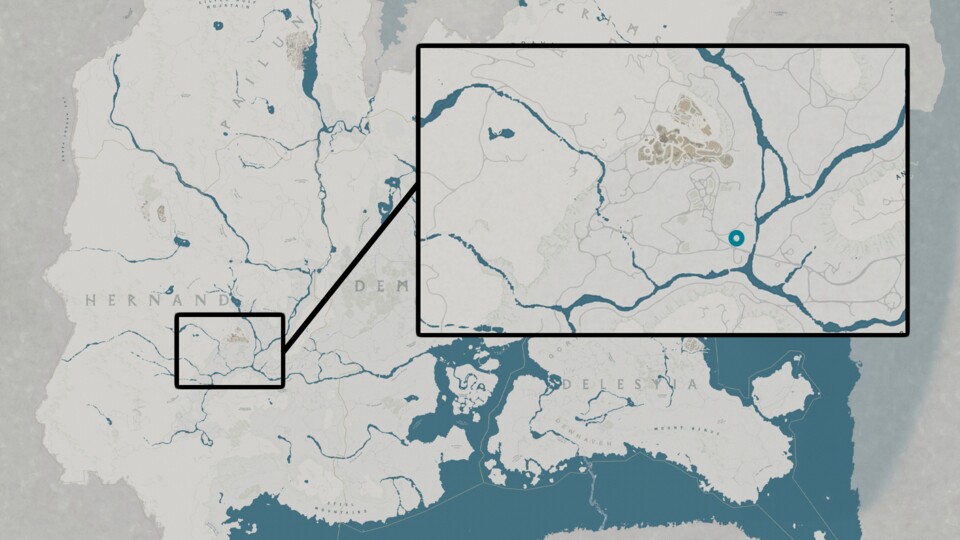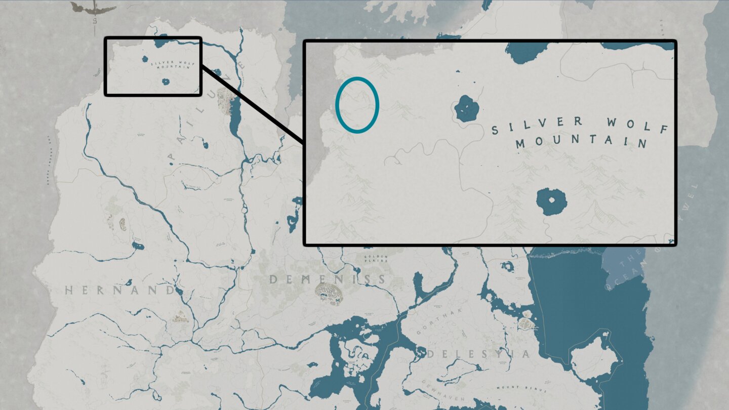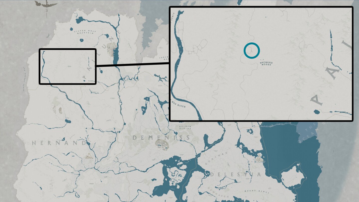 Um den legendären Wolf als Reittier freizuschalten, müsst ihr zuvor die dazugehörige Questreihe erledigen. Die startet in Hernand, im Süden der Stadt nahe der Wassermühle. Dort findet ihr eine Frau, die euch die Aufgabe Stille aus der Ferne gibt.