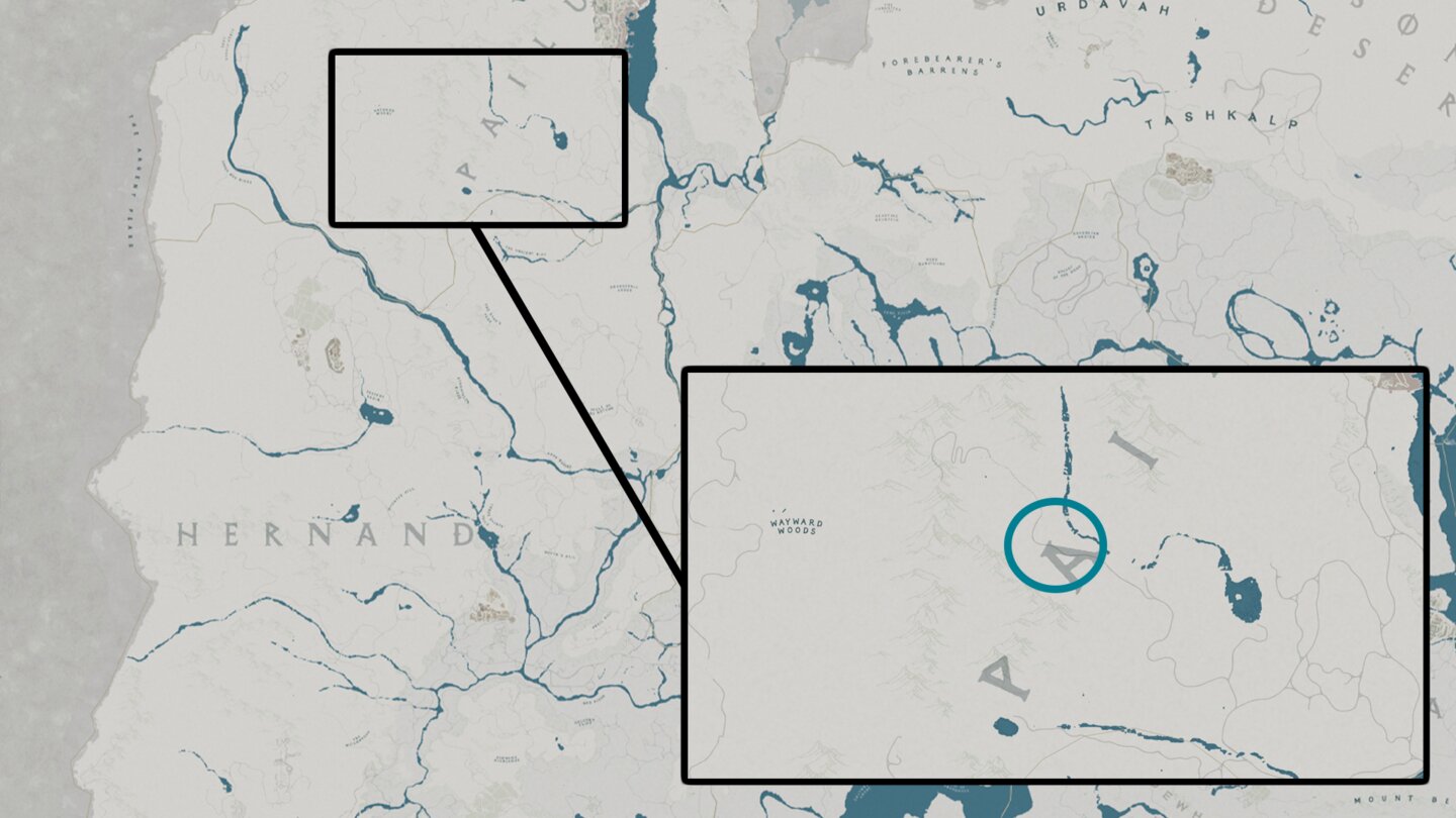 Den Weißbären könnt ihr sehr weit im Norden in Pailune finden. Er streift durch das Gebirge vor dem Five-Finger Mountain, westlich der Silver Wolf Mountains und ihr müsst keine separate Quest erledigen.