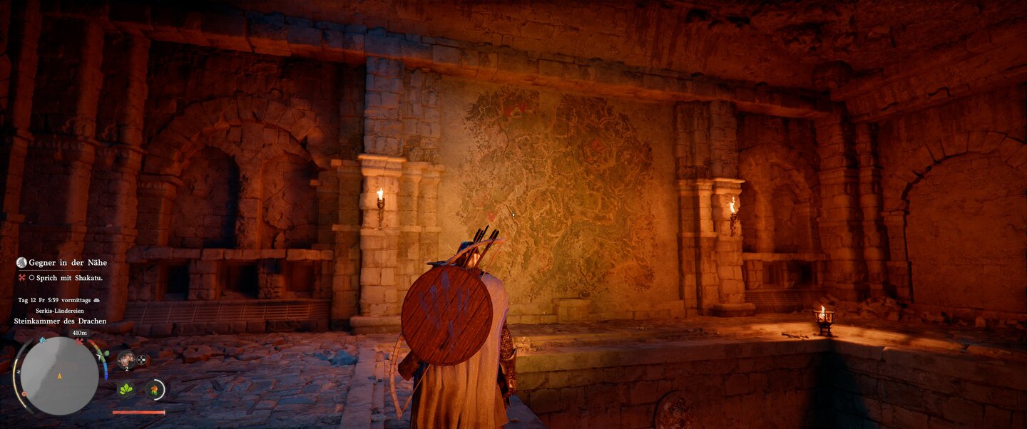 Dazu gehört auch die Steinkammer des Drachen, die ihr direkt neben eurem Camp findet, deren Lösung aber ein paar Kilometer weiter weg auf euch wartet.