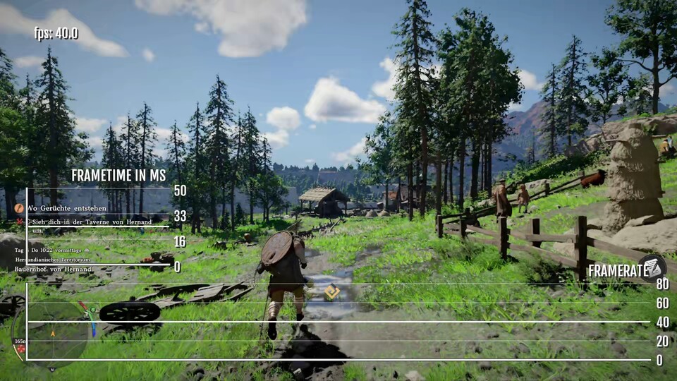 Mir sind aber auch ein paar Wackler in dicht bewuchterten Wäldern, bei hoher Weitsicht und bei großem Wasseraufkommen aufgefallen, sowohl auf der Basis-PS5 als auch der PS5 Pro. Das sind keine groben Schnitzer, komplett ruckelfrei hackt, klettert und sprintet Kliff aber eben nicht durch das Spiel.