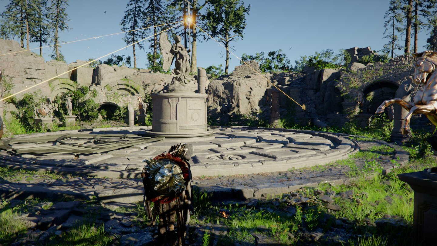 Einmal löse ich direkt vor Ort eine Logik-Herausforderung, in der ich mit vier Hebeln vier unterschiedlich hohe Säulen bewegen muss. Jeder Hebel bewegt eine unterschiedliche Kombination aus Säulen und Ziel ist es, alle vier auf dieselbe Höhe zu bekommen. Für ein anderes Rätsel muss ich die Umgebung ganz genau untersuchen, um eine Karte an einer Felswand zu entdecken. Die führt mich dann zu einem ganz anderen und weit entfernten Ort, wo ich schließlich die Lösung für das eigentliche Problem finde.