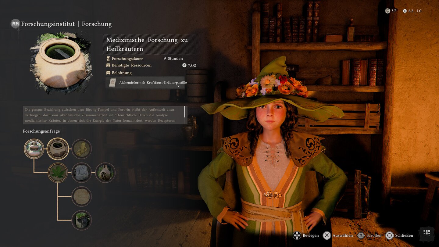 Im Anschluss kann ich nicht nur weitere Missionen für die Gruppierung erledigen, sondern auch deren Forschungsinstitut nutzen, um neue Rezepte und Verbesserungen freizuschalten.