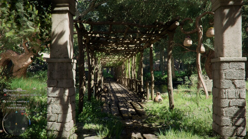 In den Trailern wird bereits klar, dass Crimson Desert mit einer beeindruckenden Grafik glänzt. Vor allem die Weitsicht und die auch aus der Ferne noch erkennbaren Details haben mich schwer beeindruckt. Beides trägt so auch maßgeblich dazu bei, meinen Erkundungsdrang immer weiter am Leben zu halten.