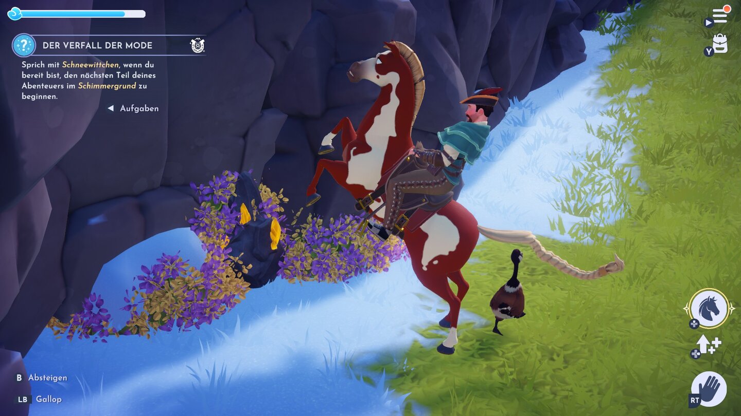 - Quests abschließen: Setzt euch auf euer Pferd, wenn ihr mit einem Charakter redet, um eine Quest abzuschließen. Auch dafür gibt es XP.
