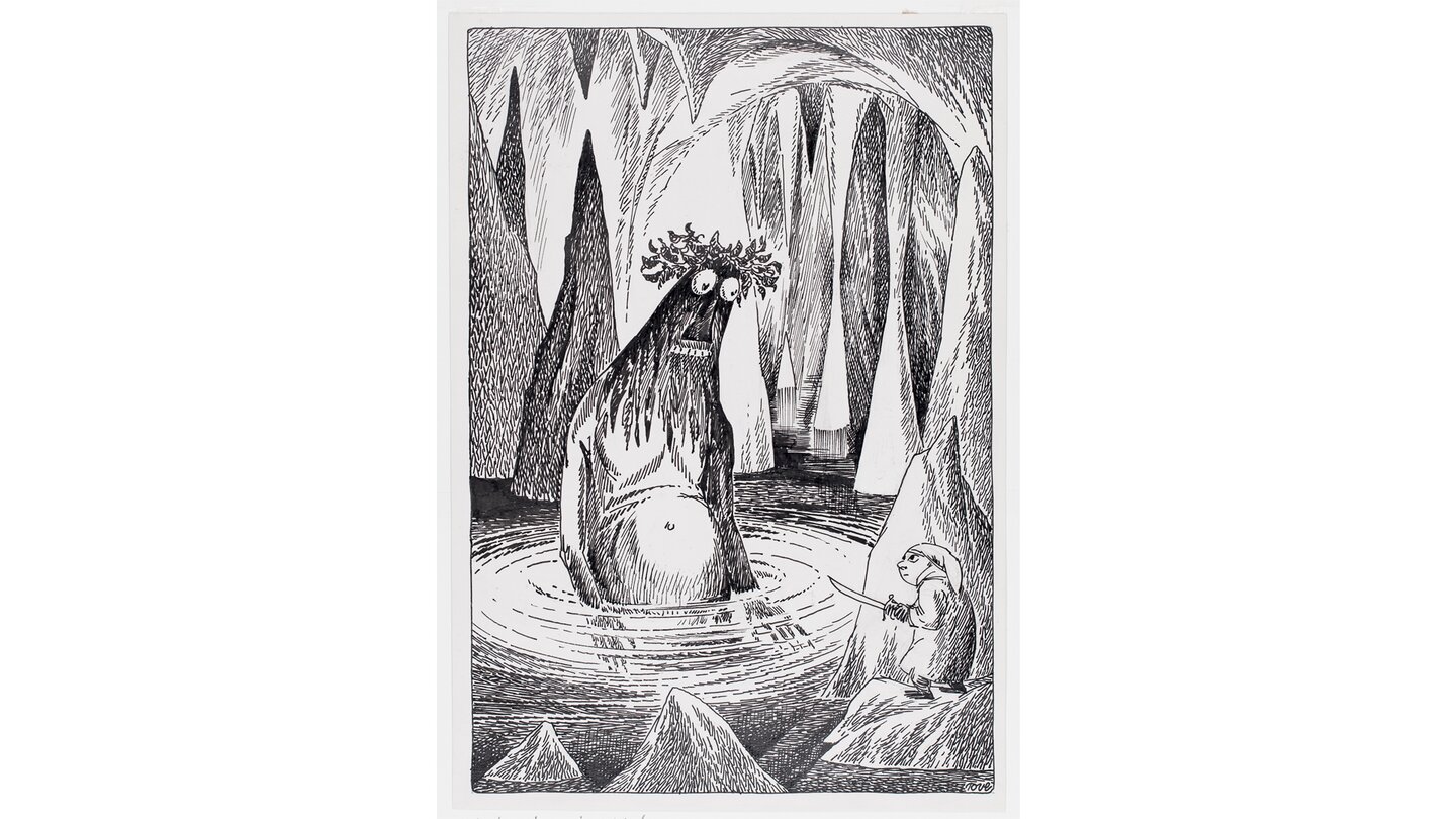 1962 wurde sie von einer gewissen Astrid Lindgren, die damals beim Verlag Rabén und Sjögren arbeitete, damit beauftragt, die schwedische Version von Der kleine Hobbit zu illustrieren. Darin hat auch die Figur Gollum ihren ersten großen Auftritt, wenn sie im Rätselwettstreit gegen Bilbo antritt, und natürlich zeichnete Jansson auch dazu ein passendes Bild.