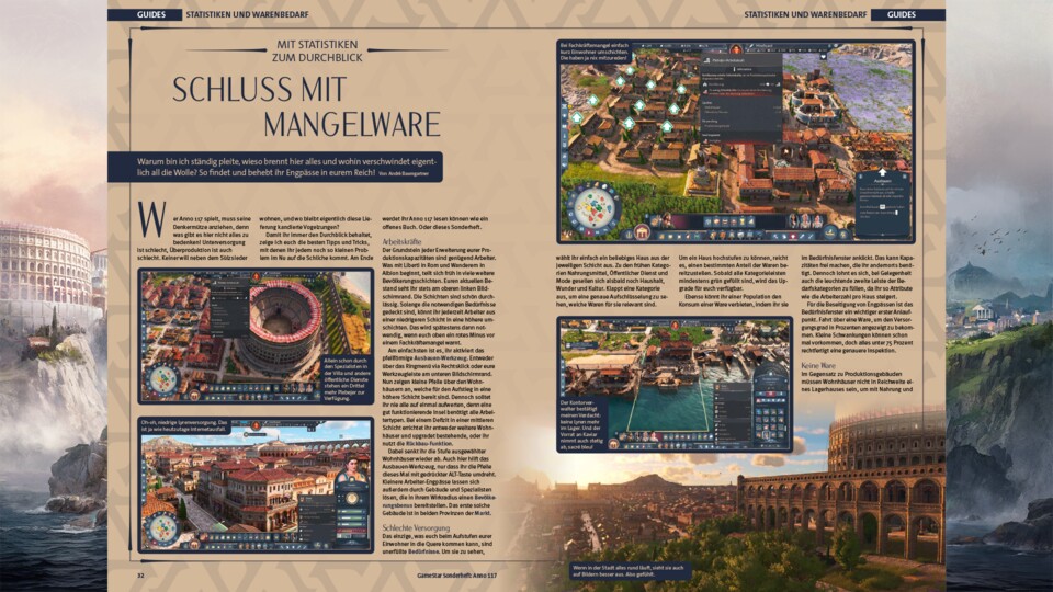 Rom wurde bekanntlich nicht an einem Tag erbaut. Und auch für Anno 117: Pax Romana solltet ihr deutlich mehr als 24 Stunden einplanen. Denn das Aufbauspiel ist nochmal deutlich komplexer und umfangreicher als seine ohnehin schon riesigen Vorgänger! Ein Glück, dass wir euch auch bei Anno 117 mit einem extradicken GameStar-Sonderheft zur Seite stehen. Auf 200 Seiten liefern unsere erfahrenen Anno-Aficionados Guides, Tipps und Hintergrundinformationen zum kolossalen Aufbaubrocken.