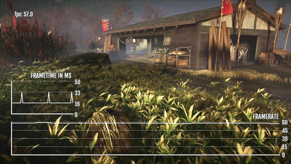 Der zusätzliche Pro-Modus läuft genau wie der Leistungsmodus bei zum Großteil stabilen 60 fps. Lediglich die Auflösung fällt ein Stückchen niedriger aus, der Bildeindruck ist also eine Spur unschärfer.