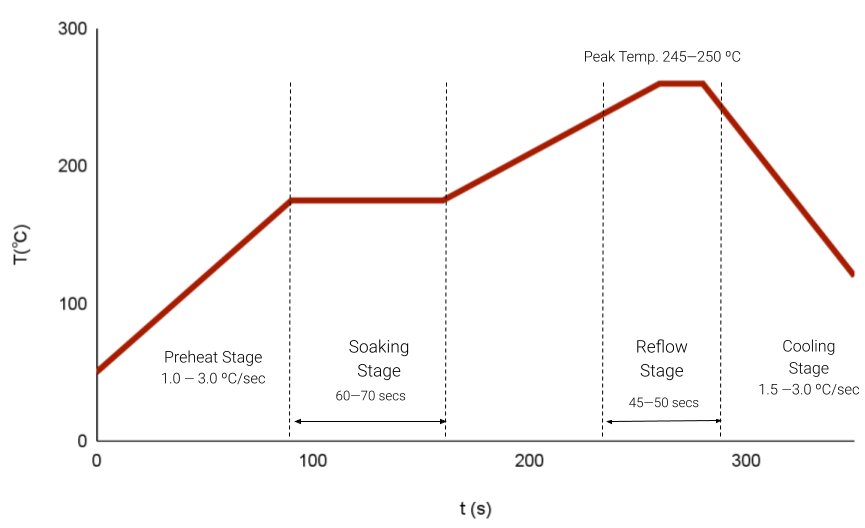 Dabei hält man sich am besten zusätzlich auch noch an ein sogenanntes Reflow-Profil, denn das gibt einen optimalen Temperaturverlauf bei dem Vorgang vor. Somit seien die Erfolgschancen höher und die Defektwahrscheinlichkeit geringer, da die Platine weniger stark beansprucht wird.