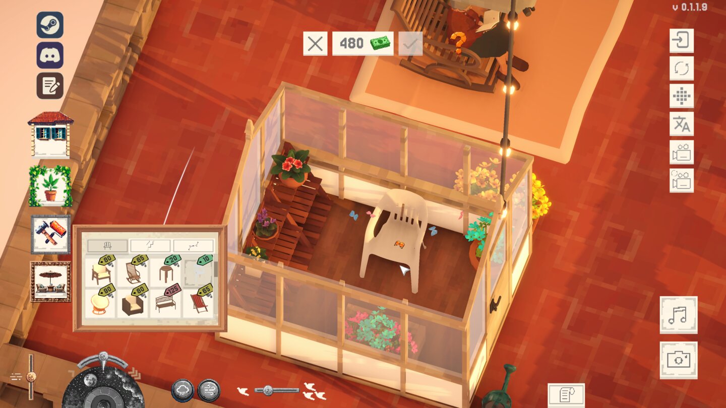 Für mich hat das bereits in der begrenzten Testversion gut funktioniert. Da das Cozy Game, in dem wir ganz ohne Zeitdruck Dachterrassen bauen und dekorieren, aber noch nicht fertig ist, habe ich mich mit dem Entwickler Aleksandr und seinem Publisher UNIKAT Label zusammengesetzt, um noch mehr über den kommenden Indie-Titel herauszufinden.