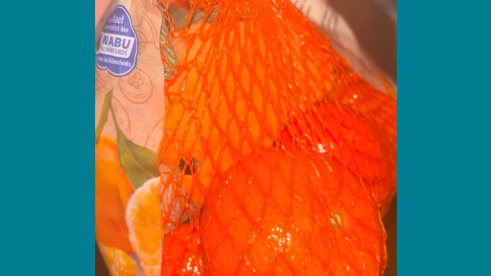 Im Subreddit r/Jellycatplush teilt eine Nutzerin ein Foto von einem Geburtstagsgeschenk für ihre Freundin. Zu sehen ist ein ganz normales Netz Mandarinen aus dem Supermarkt.