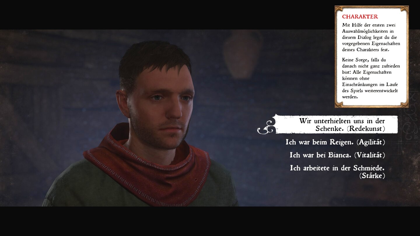Außerdem hilft sie euch beim Schleichen. Denn ob ihr eine Wache von hinten überwältigen könnt, hängt von eurer Stärke ab.
