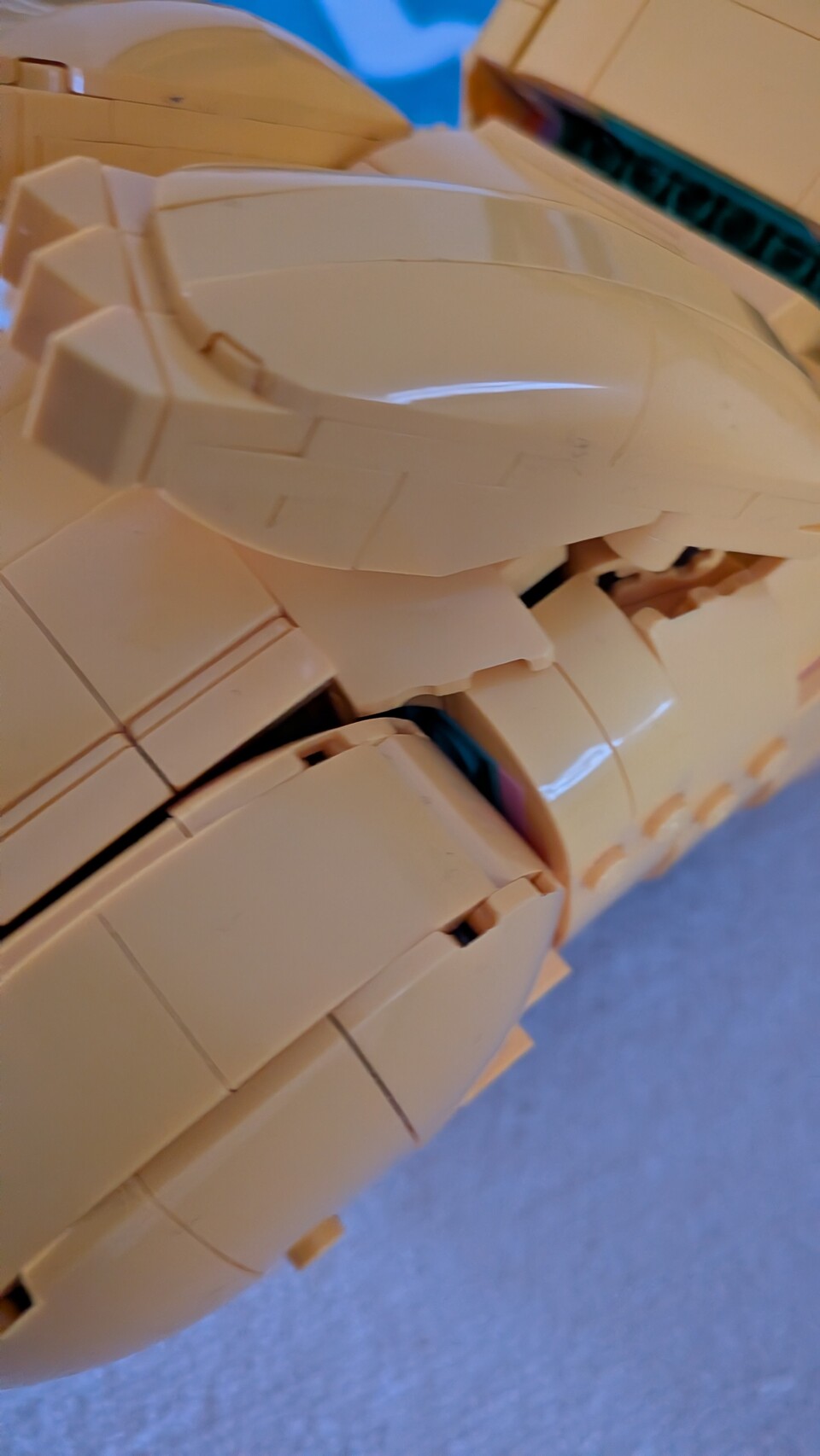 Beim Aufstecken des Kopfes haben sich die Arme, mehrere Teile des Körpers sowie ein Fuß verabschiedet. Auch die Konstruktion des Schwanzes hält eher durch viel Willens- statt Klemmkraft. Das sind alles kleine Probleme, die zwar schnell behoben sind, aber am Ende des Tages dafür sorgen, dass ich immer wieder frustriert den Bau pausieren und etwas reparieren muss.