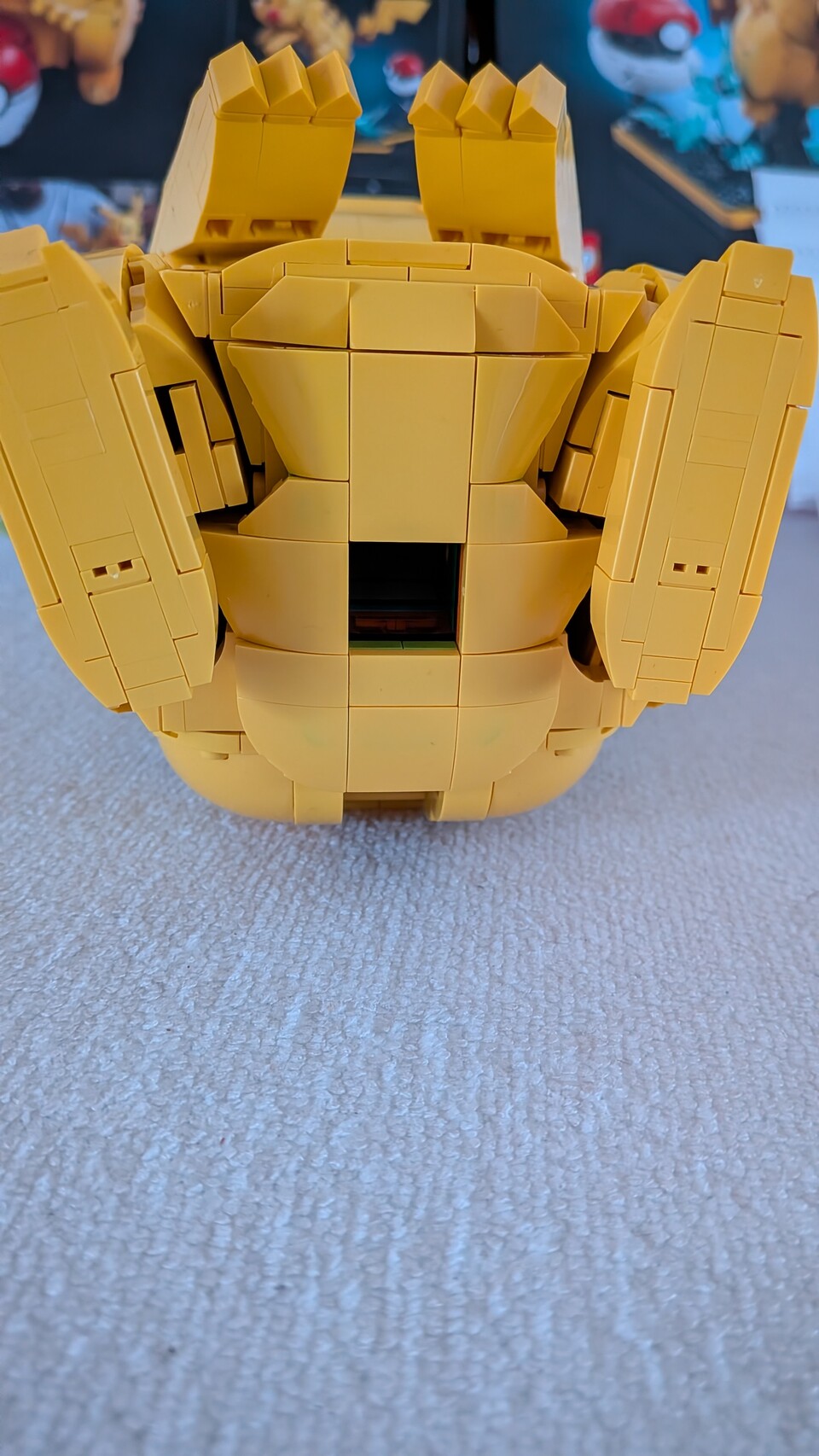 Ich hätte mir einfach zwei mögliche Positionen für den Kopf gewünscht. Das Pikachu sieht süß aus, wenn es auf dem Tisch steht und einen hoffnungsvoll anschaut. Aber in allen anderen Situationen bevorzuge ich dann doch die Action-Pose auf dem Standfuß, auf den ich vor dem Bau sogar am liebsten verzichtet hätte.