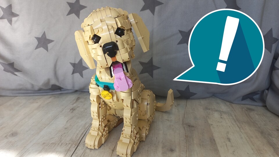 In Sets, die kleinteilige Szenerien samt Minifiguren darstellen, packt LEGO oft viele kleine Details, die sich vielleicht auch erst auf den zweiten Blick erspähen lassen. Bei einer großen Figur wie dem putzigen Golden Retriver Welpen ist das natürlich so nicht möglich.