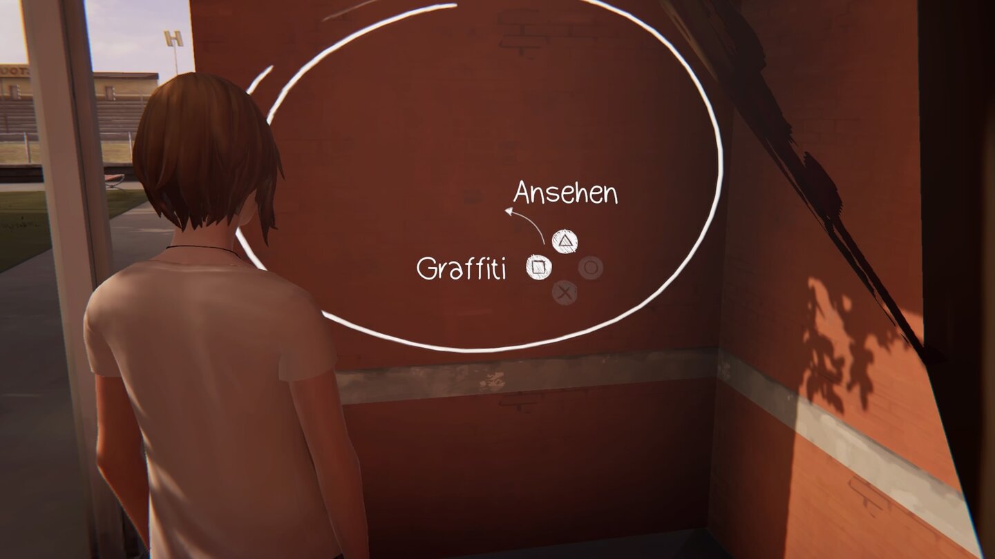 Habt ihr den Campus der Blackwell Akademie betreten, geht hinüber zum Gebäude direkt an der Bühne. Hier findet ihr eine Nische, wo ihr euer Graffiti anbringen könnt.