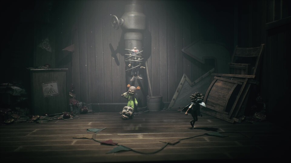 In gewohnter Little Nightmares-Manier führt euch das Spiel beispielsweise durch einen gruseligen Jahrmarkt, auf dem fiese Bauchredner-Puppen Jagd auf euch machen. Oder ihr schleicht durch eine Lolli-Fabrik, in der die Hygienevorschriften nicht ganz so ernst genommen werden. Für welche Ängste und Albträume die Kulissen stehen, ist dabei ganz eurer Interpretation überlassen.