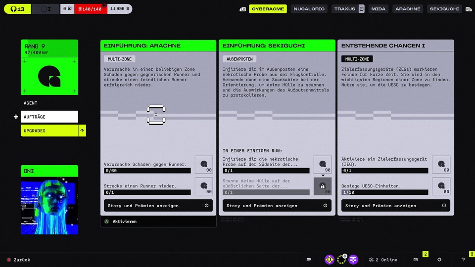 Das lag aber nicht nur an der abgeschlossenen "Lernphase", sondern auch an zwei anderen Punkten: Zum einen kommt dann nämlich der Upgrade-Loop der Fraktionen langsam ins Rollen. Erledigt ihr Aufträge für die unterschiedlichen Konzerne, steigt ihr in deren Gunst und könnt dann mit eingesammelter Kohle wichtige Ressourcen-Upgrades freischalten.