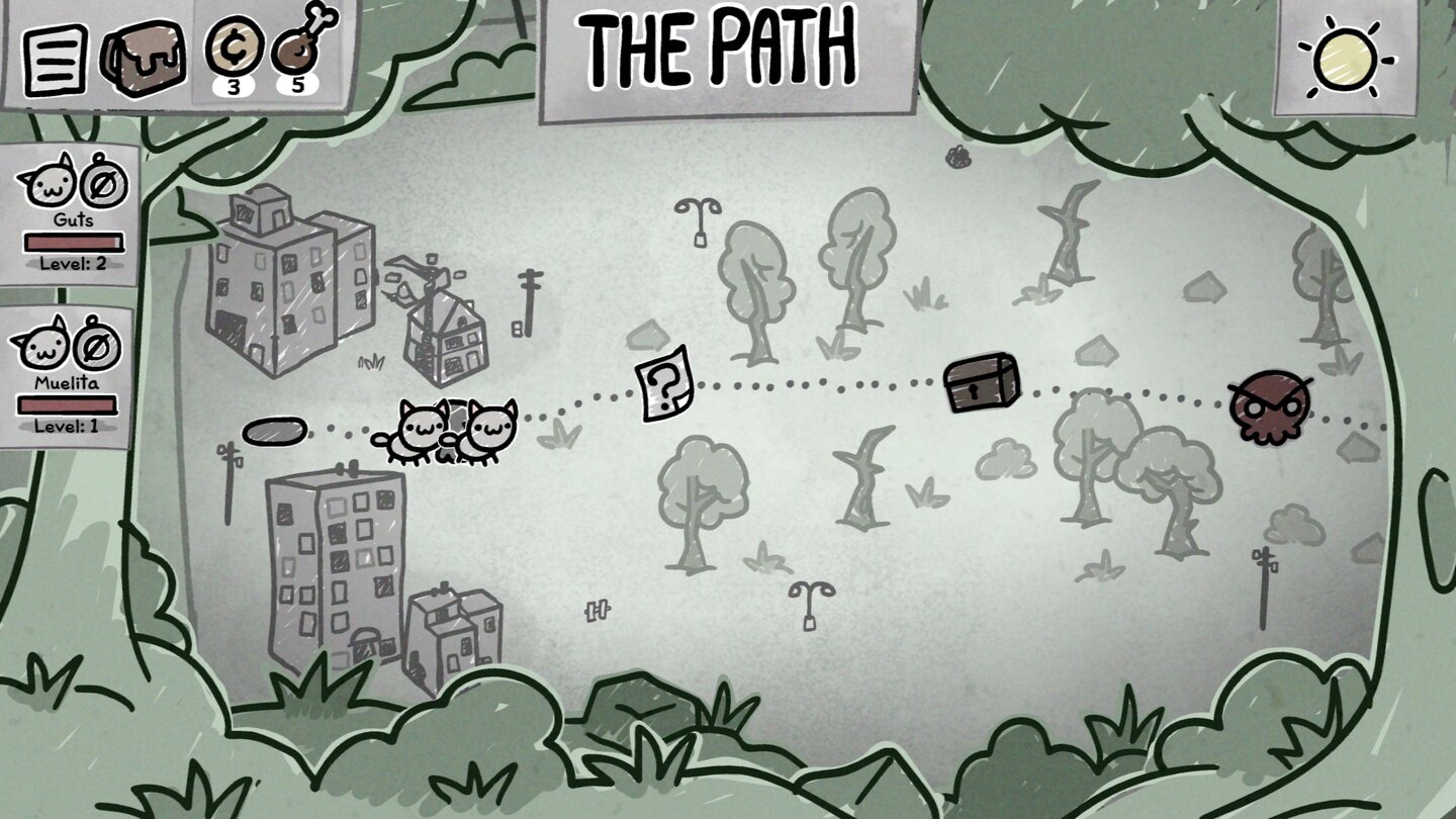 Steht der Katzen-Squad, geht's ab in den Run, der je nach Progression auf immer härteren Karten stattfindet, an deren Ende ein Boss lauert. Hier kommt es dann meist zu Kämpfen oder zu Events.