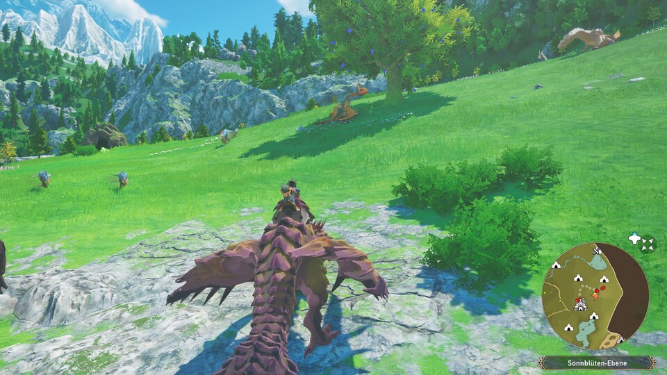 Überall gibt es Pflanzen oder Tiere zu sehen, versteckte Höhlen und Nester zu entdecken, unterschiedliche Monster, die in ihrem Habitat herumfliegen, nach Nahrung suchen oder einfach schlafen. Mit unseren eigenen Monsties können wir zudem über die Map fliegen, Wände hochklettern, im Wasser schwimmen und vieles mehr, was den Eindruck einer lebendigen Welt verstärkt.