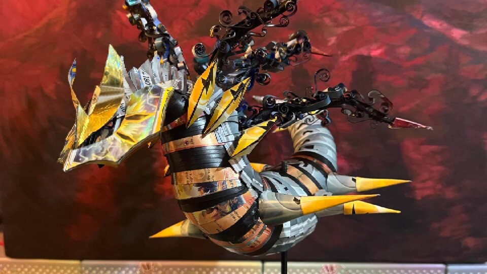 Der kreative Pokémon-Fan hat nämlich einen ganzen Haufen der Sammelkarten zerschnitten und aus den Einzelteilen eine Skulptur vom legendären Pokémon Giratina gebaut. Das klingt ziemlich abgedreht, sieht in der Realität aber verdammt cool und beeindruckend aus.