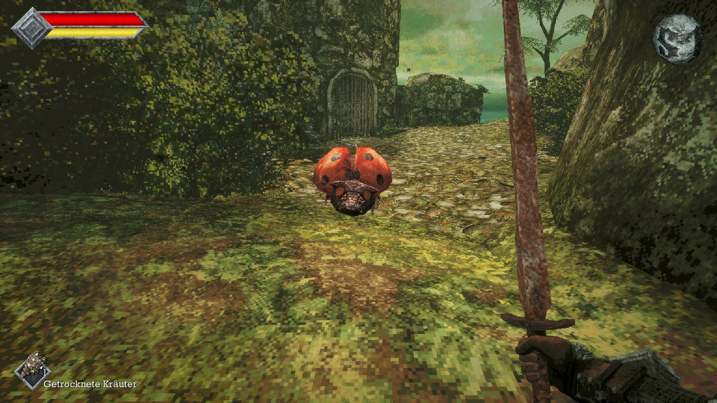 “Queen’s Domain” ist nicht nur im Titel eine Hommage an “King’s Field”, sondern orientiert sich spielerisch – und sogar optisch – am historischen Vorbild. Das Ergebnis ist ein richtig cooler Retro-Look und ein simples, aber beeindruckendes kleines RPG-Projekt.