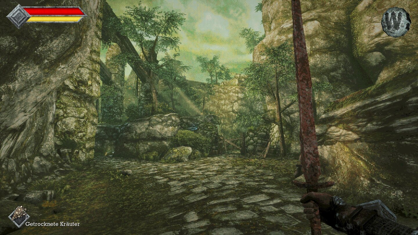 Als gestrandeter Schiffbrüchiger auf einer mittelalterlichen Insel gibt es für uns alte Ruinen, verschiedene Monster und Waffen mit unterschiedlichen Vor- und Nachteilen zu entdecken. Für besiegte Feinde bekomme ich XP und Level-Ups, außerdem werde ich mit einzelnen Waffen besser, je mehr ich sie benutze. Trotz regelmäßiger Kämpfe liegt der Fokus des Spiels aber eher auf der Erkundung in Ego-Perspektive.