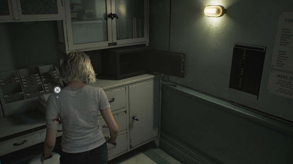 Fundort des Safes: Den zweiten Safe findet ihr im Ostflügel, den ihr erst einmal aufsperren müsst. Folgt ihr dem Weg, kommt ihr automatisch zum Untersuchungszimmer im Erdgeschoss. Hier steht der Safe in einem Schrank in der Ecke, nahe dem Körper mit den fehlenden Organen.