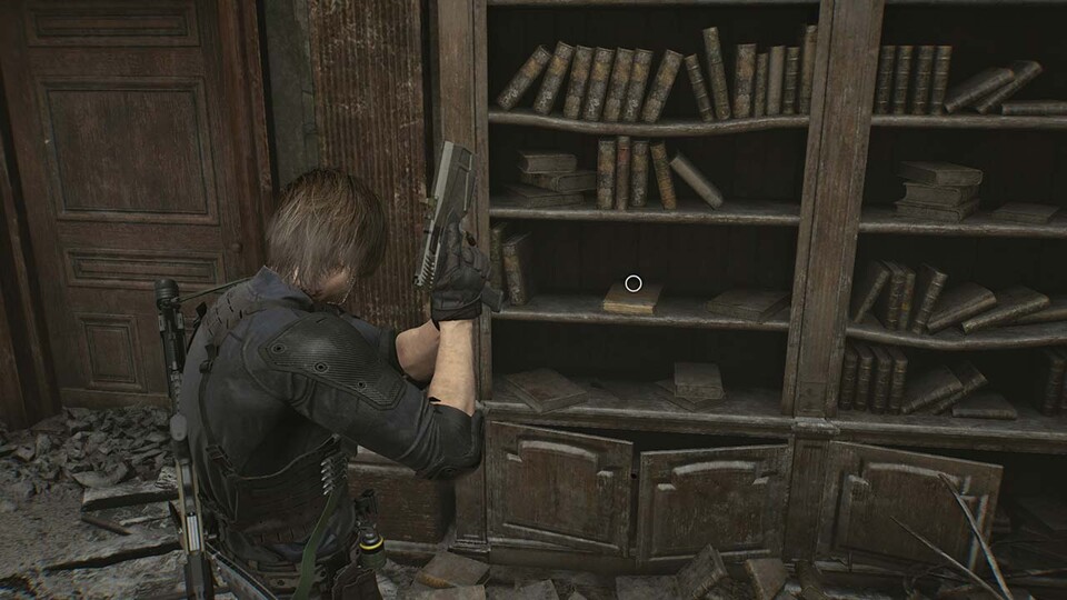 Zuletzt geht es also in die Bibliothek, die sich den Gang runter befindet. Nehmt darin die Treppe nach oben und folgt dem Gang, der zur anderen Seite führt. Direkt rechts von der versperrten Tür liegt im Regal ein Buch.