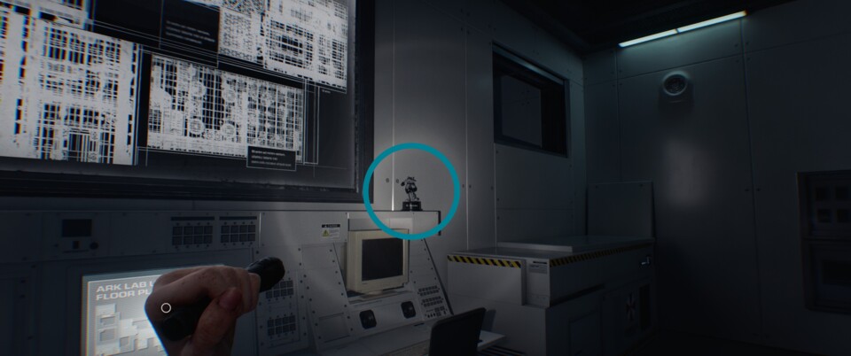 Ihr findet den Raccoon direkt auf dem Tisch der Werkstatt neben einem Dokument. Ihr braucht eine Stromzelle, um die Tür zu öffnen.