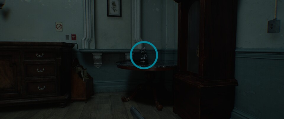 Der erste Mr. Raccoon ist extra offensichtlich platziert, um euch zu zeigen, dass sie überhaupt existieren. Ihr findet ihn nach dem Kampf in der Reha-Station auf dem Kamin im Zimmer mit der Treppe.