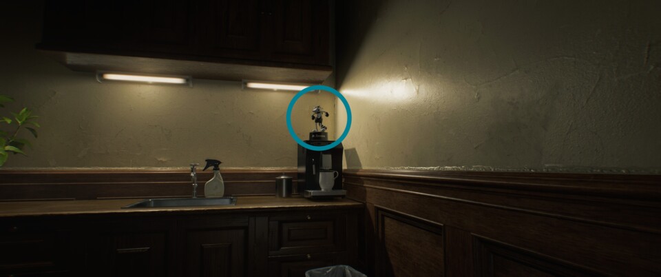 Ihr findet die Figur auf der Kaffeemaschine in der Kochnische, sobald ihr Zugang zur restlichen ersten Etage des Westflügels habt.