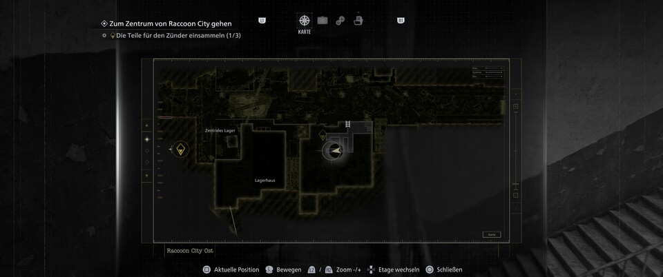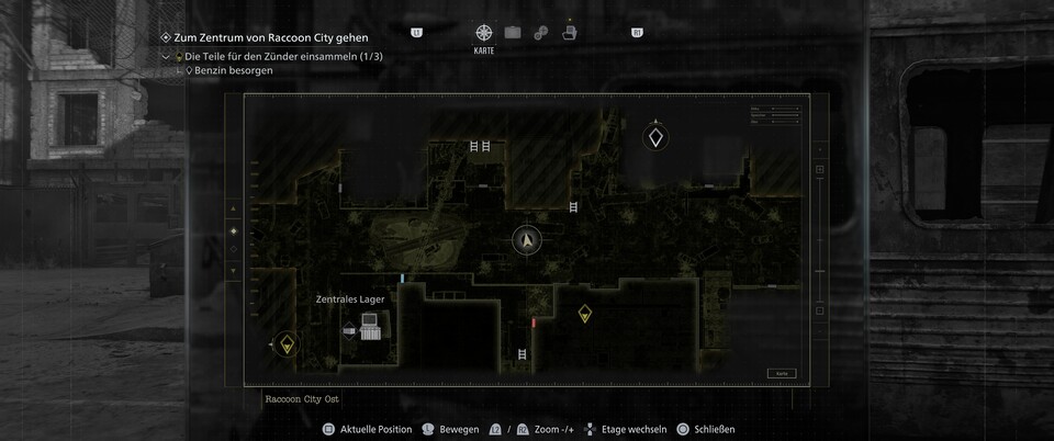 Ebenfalls im Untergrund ist eine zweite Figur. Arbeitet euch nach Norden zu den Gleisen vor und folgt dem Weg nach Westen. In einem der Waggons ist der Raccoon.