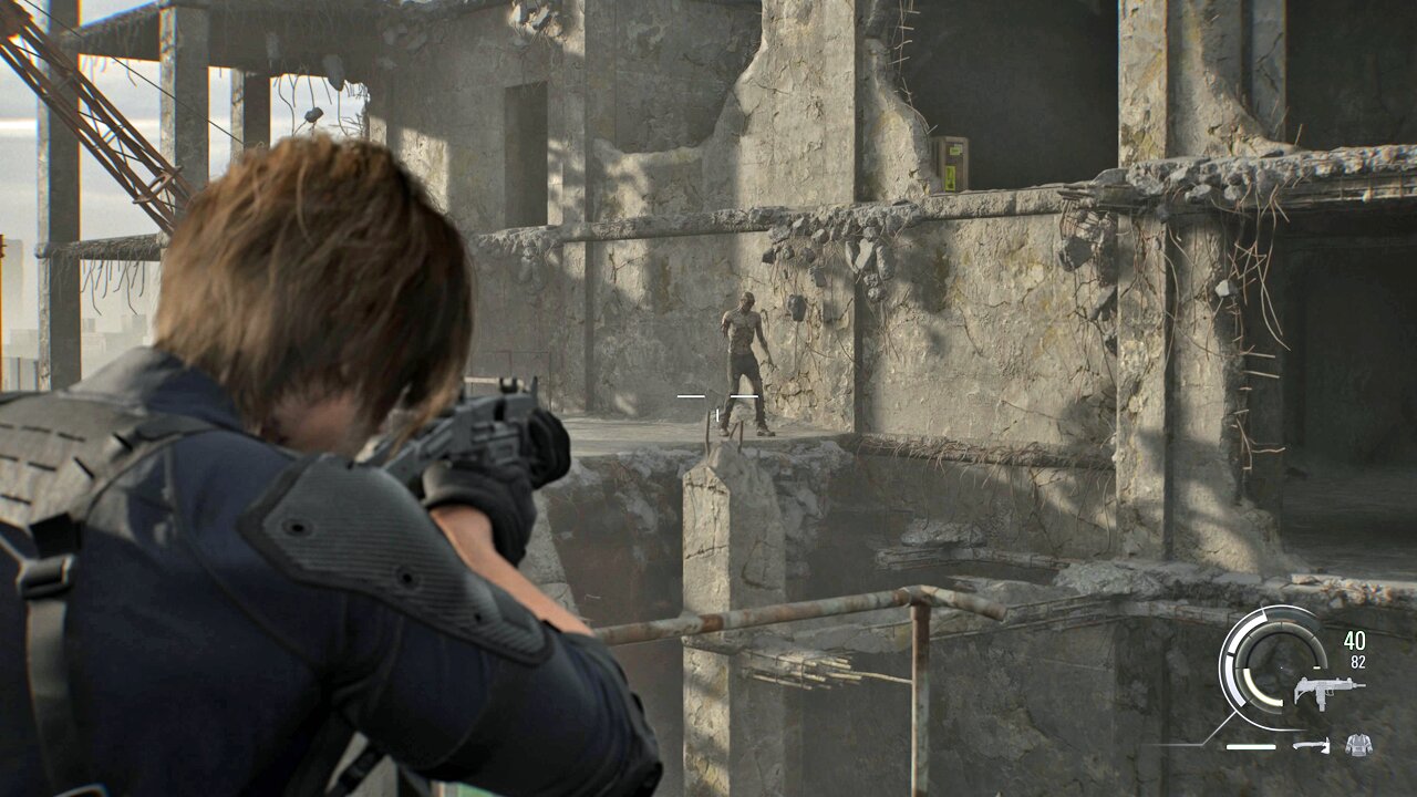 Leon ist einmal mehr der Ballermann, der in sein riesiges Inventar von der Maschinenpistole bis hin zu verschiedenen Scharfschützengewehren alles packt, was Krawall verursacht. Ist Grace im Abschnitt zuvor noch vor einem riesigen Glibber-Monster geflohen, hält Leon dem Ekelviech kurzerhand seine Schrotflinte ins Gesicht und quittiert das Ganze am Ende mit einem flotten Spruch.