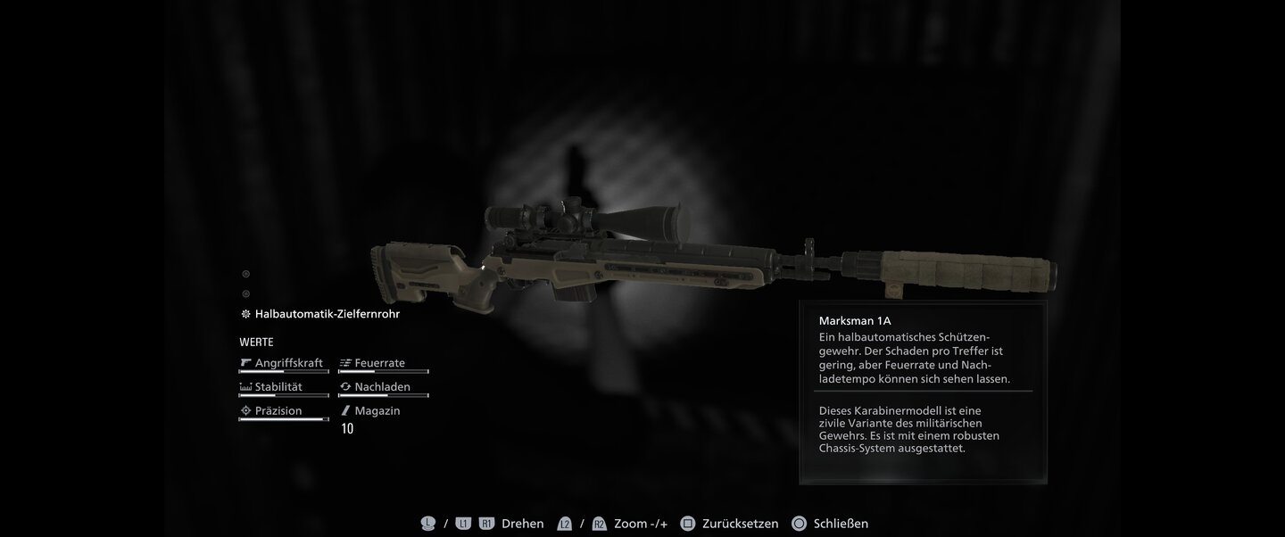 Das zweite Gewehr bekommt ihr aus dem BSAA-Container auf der östlichen Seite der Hauptstraße. Auf dem Papier klingt das Gewehr besser, aber der Schaden der Classic ist zu gut. Verkauft es an der Waffenstation und investiert die Credits in die Classic.