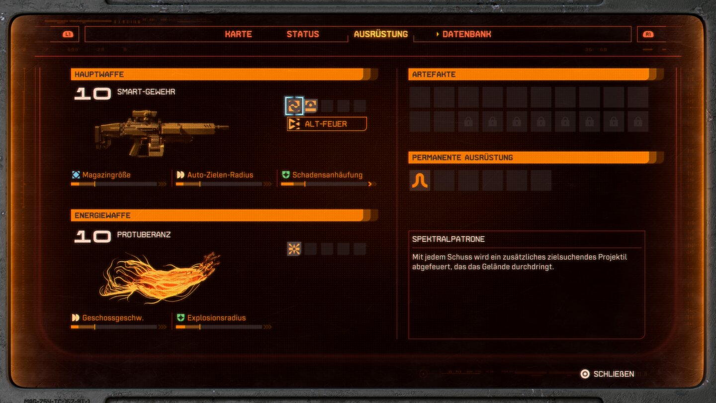 Alle Knarren werden an bestimmten Punkten in der Story freigeschaltet und sind ab dann in allen Biomen auffindbar. Verpassen könnt ihr keine. Jede Hauptwaffe gibt es in drei unterschiedlichen Varianten, die sich teils sehr unterschiedlich spielen und einen eigenen Alt-Feuermodus haben.