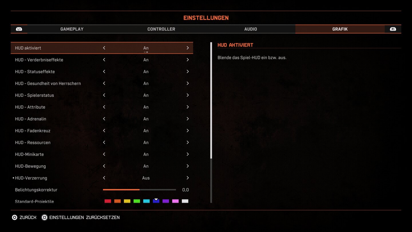 - unsere Empfehlung: HUD-Verzerrung Aus