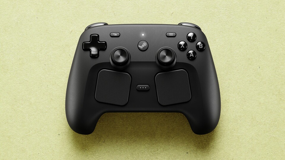 Die Steam Machine kommt gleichzeitig mit einem neuen Controller. Er ähnelt den Griffen des Steam Deck, hat also zwei Touch-Pads verbaut, um beispielsweise einen Mauszeiger zu steuern. Zusätzlich verfügt der Valve-Controller über vier Rücktasten und kapazitive Griffe für störungsfreies Gyro-Aim. Der Controller erkennt also, sobald ihr ihn in die Hand nehmt oder loslasst.