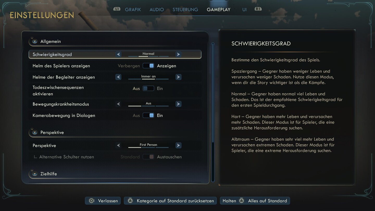 Wir empfehlen: Der normale Schwierigkeitsgrad (2 von 4) bietet für unser Empfinden eine angenehme Mischung aus Kämpfen, in denen ihr schon ein bisschen aufpassen müsst und ab und zu sterben werdet, aber insgesamt nicht ewig an Gefechten hängen bleibt.
